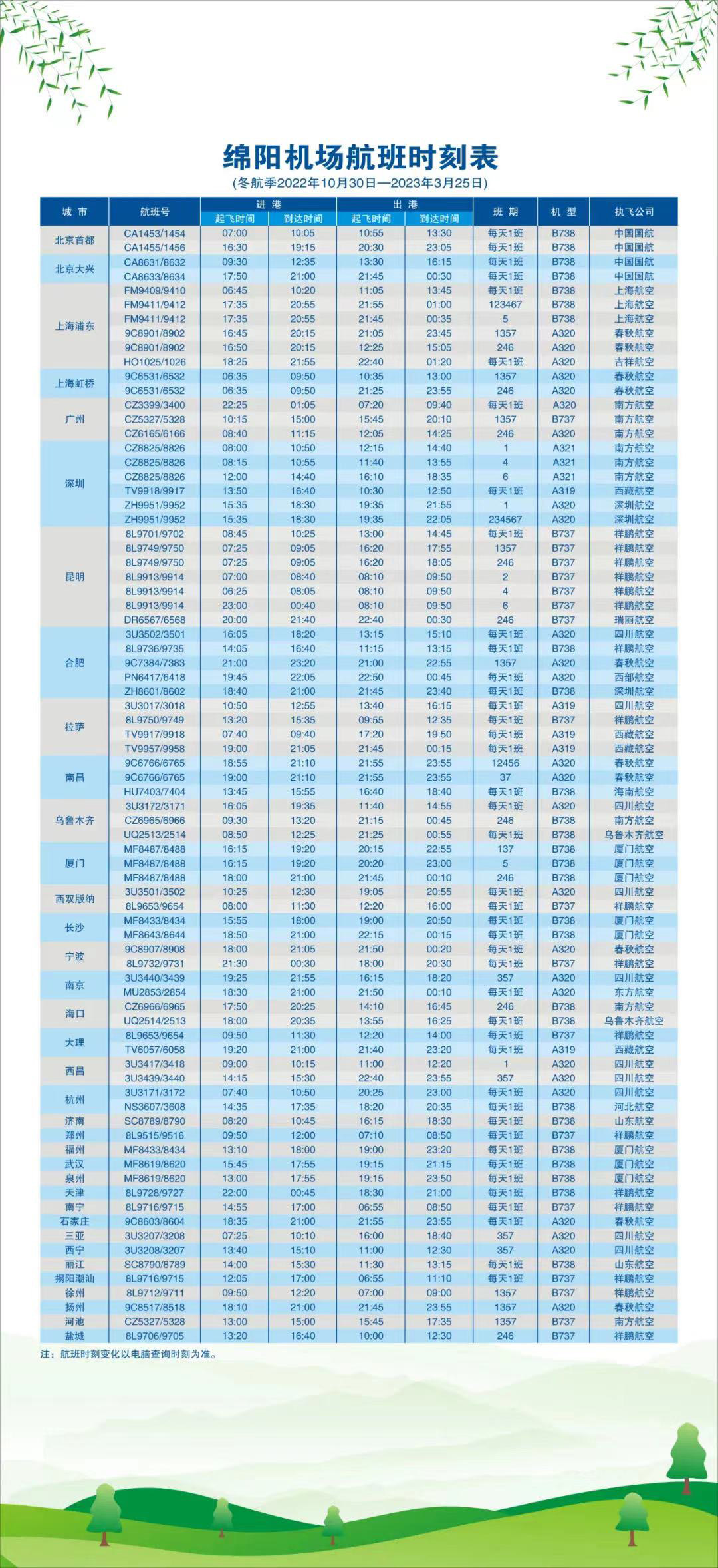 綿陽機場航班