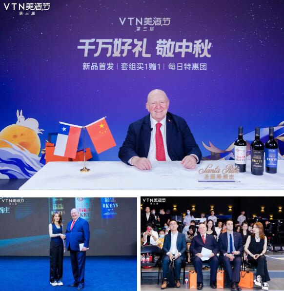 智利駐華大使Luis Schmidt Montes先生,智利葡萄酒協(xié)會(huì)亞太區(qū)總監(jiān)Nicolai Samsing先生,智利圣麗塔酒莊集團(tuán)大中華區(qū)總經(jīng)理Shelley徐珊女士親臨直播現(xiàn)場,為VTN的用戶展示了圣麗塔之鑰的優(yōu)質(zhì)葡萄酒系列,旨在通過高品質(zhì)的標(biāo)準(zhǔn)和引人入勝的故事來吸引中國消費(fèi)者。