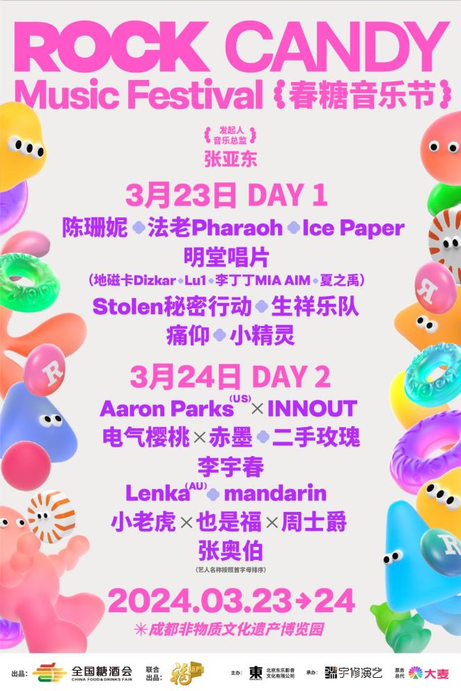 3月23日至24日,由全國糖酒會組委會與福臨門亞麻籽油聯(lián)合出品,知名音樂制作人張亞東擔(dān)任音樂總監(jiān)的“ROCKCANDY春糖音樂節(jié)”將在成都市青羊區(qū)非遺博覽園舉辦,攜手李宇春、痛仰樂隊、二手玫瑰等實力唱將,傾力打造一場“好看、好聽、好吃”的“三好”音樂盛宴,讓來蓉客商與成都市民一起“過完春節(jié)過春糖”。