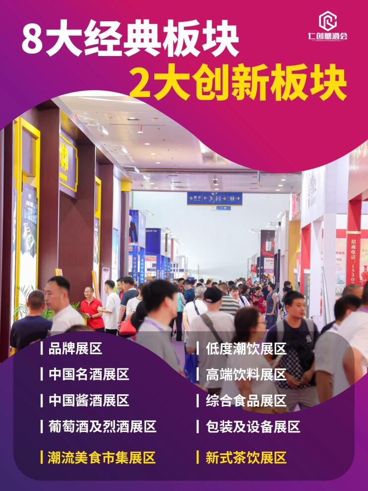 中國(guó)醬酒展區(qū)、葡萄酒及烈酒展區(qū)、低度潮飲展區(qū)、高端飲料展區(qū)、綜合食品展區(qū)、包裝及設(shè)備展區(qū)。