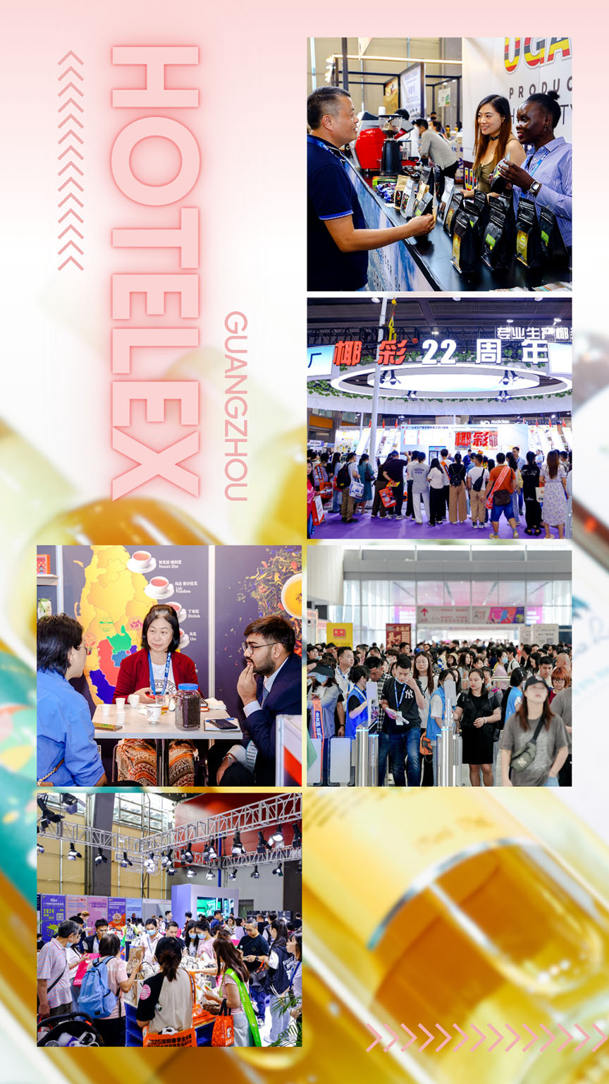 2025HOTELEX廣州展將從源頭到終端進(jìn)行食飲產(chǎn)業(yè)的生態(tài)串聯(lián),打造一場覆蓋咖啡茶飲、飲品綜合、食品綜合、餐飲設(shè)備、餐飲包裝、冰淇淋與烘焙、巧克力及乳制品、休閑零食等品類的”食飲+烘焙”產(chǎn)業(yè)鏈全景秀。