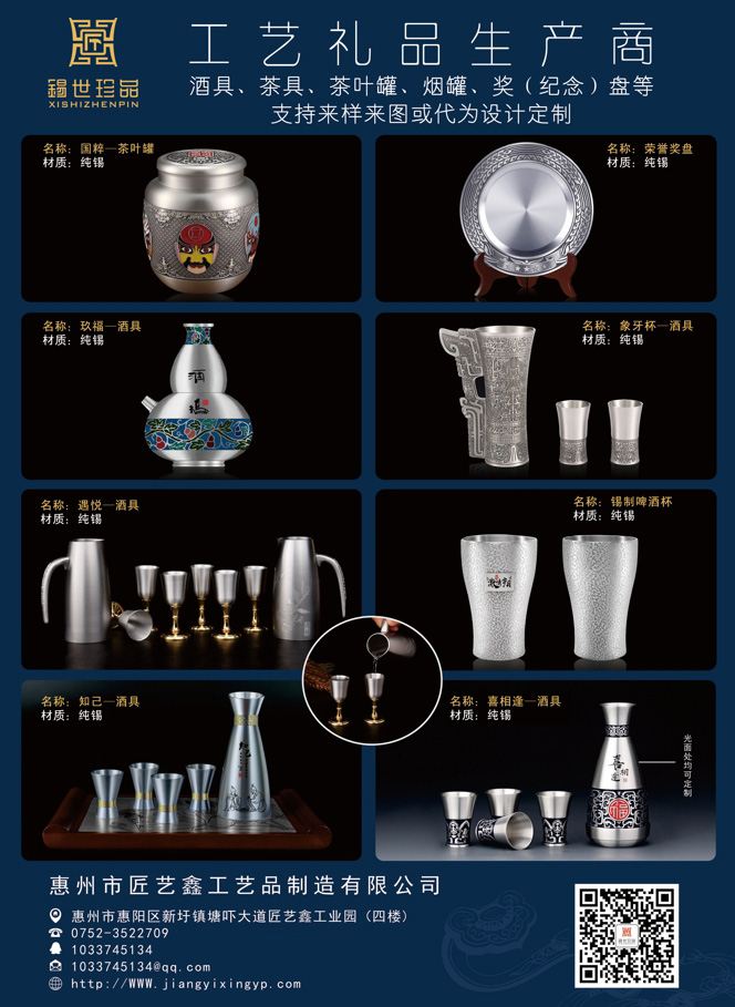 酒具、茶具、茶葉罐、煙罐、獎(jiǎng)(紀(jì)念)盤等工藝禮品生產(chǎn)商,