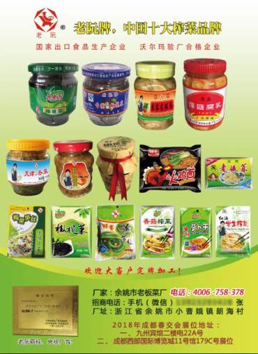 老阮牌,中國十大榨菜品牌 ——余姚市老板菜廠