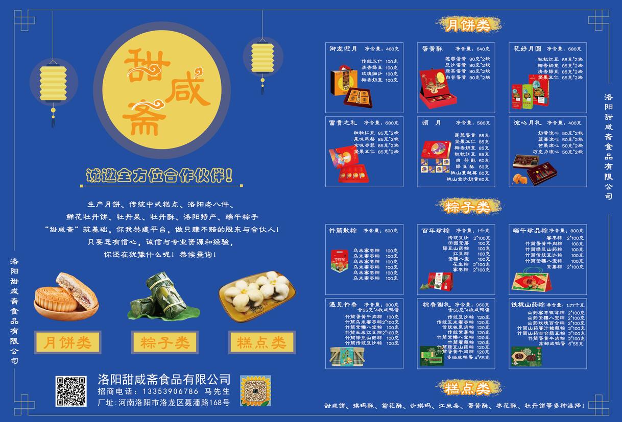 月餅、傳統中式糕點、洛陽老八件、鮮花牡丹餅、洛陽特產、端午粽子!