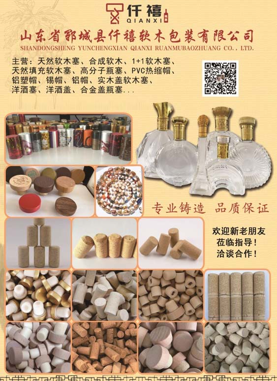 主營:天然軟木塞、合成軟木、1+1軟木塞、天然填充軟木塞、高分子瓶塞、PVC熱縮帽、鋁塑帽、錫帽、鋁帽、實木蓋軟木塞、洋酒塞、洋酒蓋、合金蓋瓶塞...